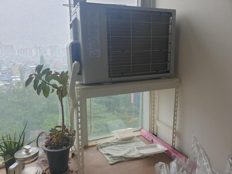 에어컨 실외기를 방안에 설치하고 갔어요.