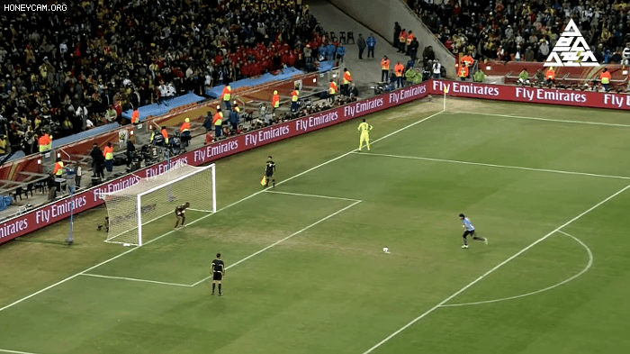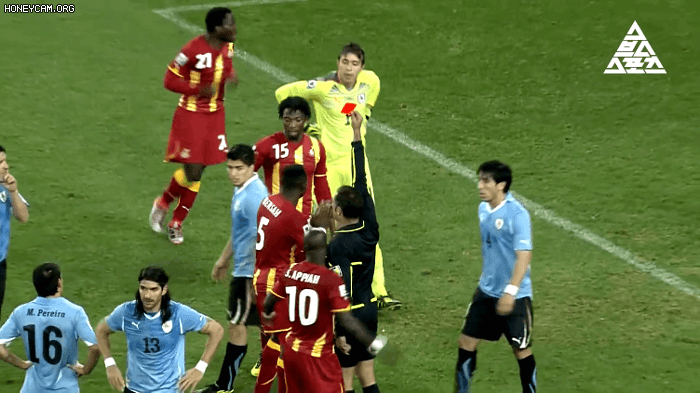 연장 후반에 수아레즈가 들어가는 공을 손으로 막아내고 퇴장당했죠.