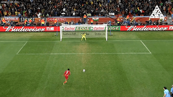 연장 후반에 수아레즈가 들어가는 공을 손으로 막아내고 퇴장당했죠.
