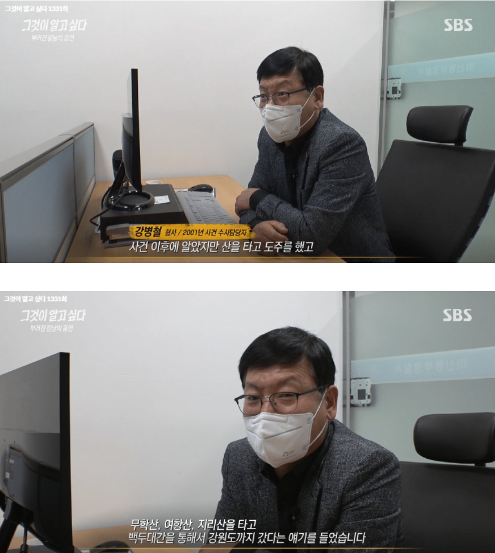 아내를 살해 후 경찰에게 잡히게 될까봐 산을 타고 도주를 했습니다.