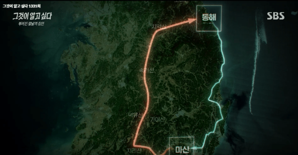 무학산, 여항산, 지리산을 타고 백두대간을 통해 강원도 까지 갔다는 가해자!