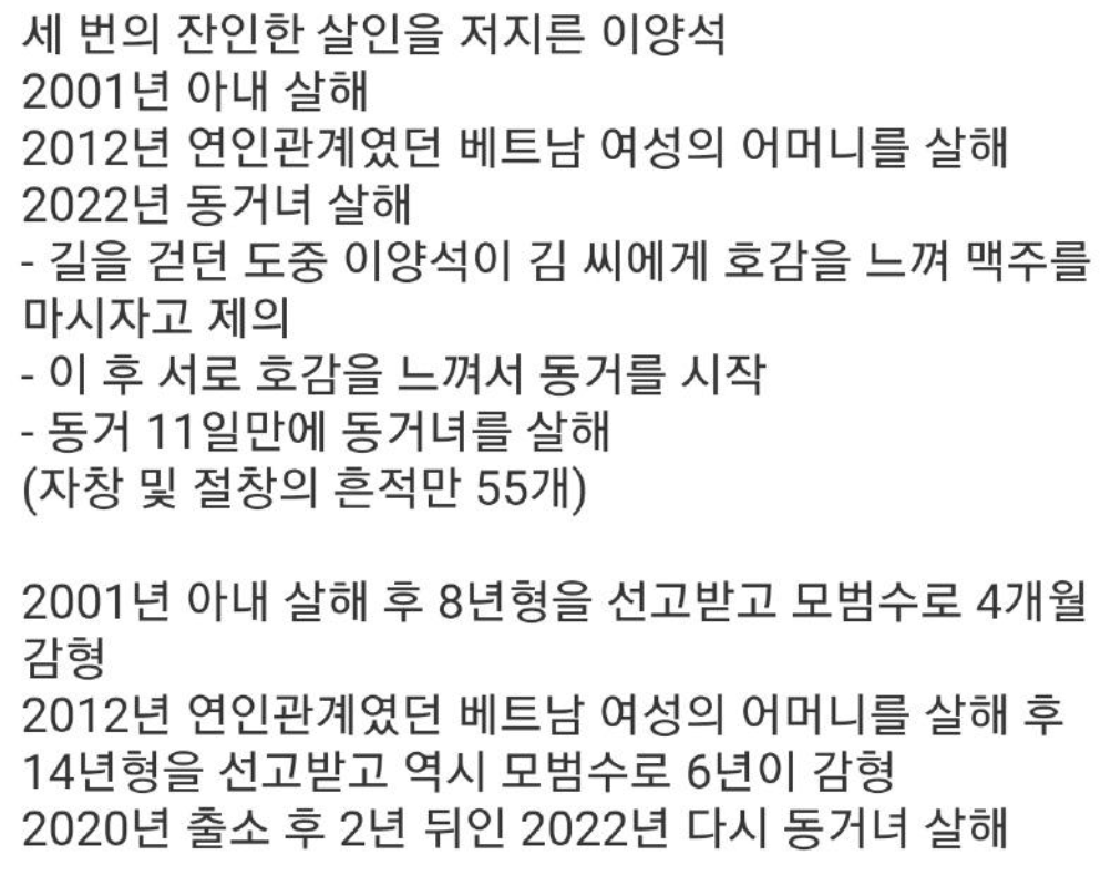또 다시 올해 동거여성을 잔인하게 살해을 한 이양석!
