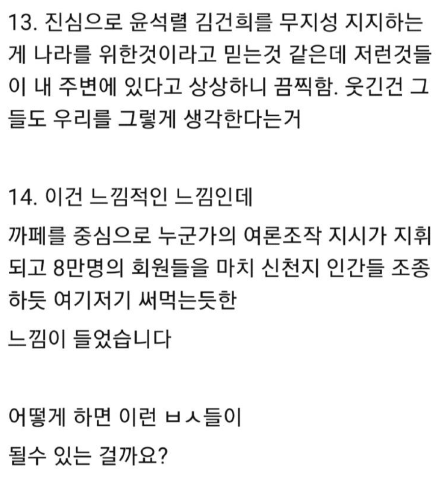 열심히 윤씨 김씨 욕하는 글들 경찰에 고발을 한다고 하고