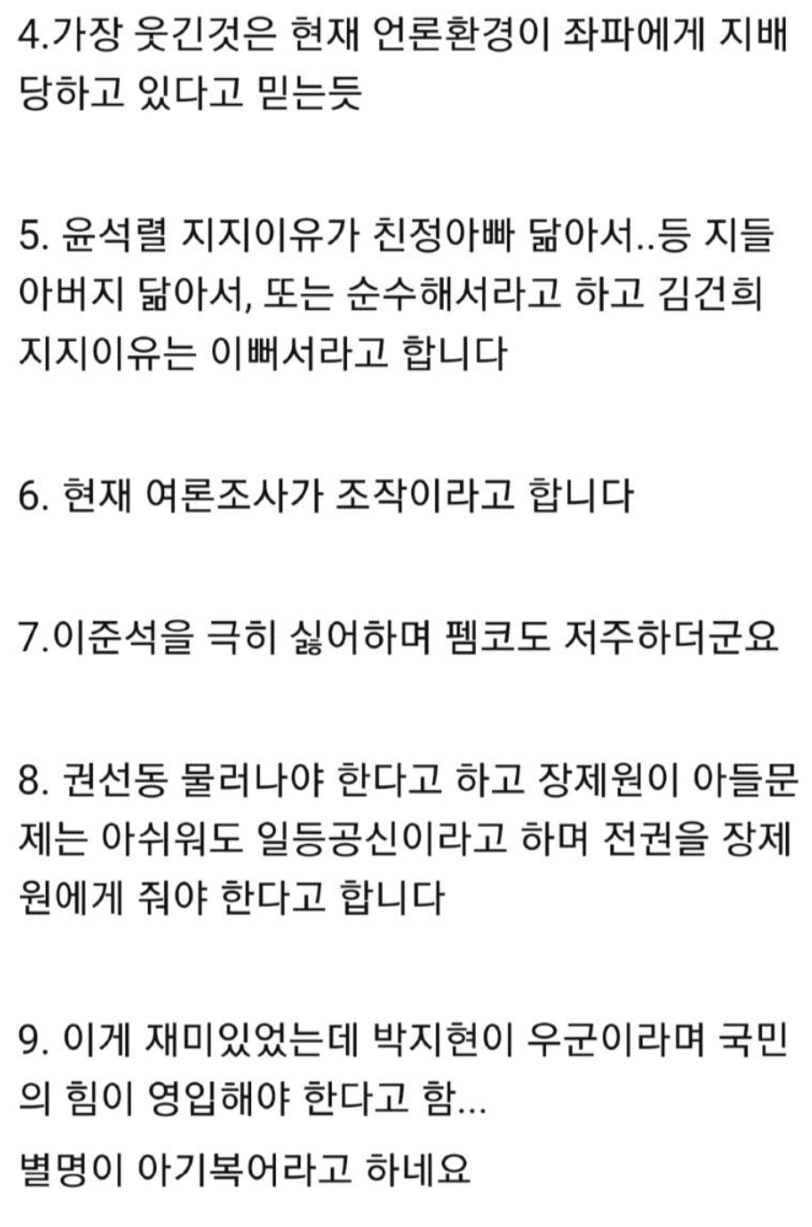 건희사랑은 모르겠는데 저는 중도이지만 윤각하 좋아하는사람 만나서 잘못된건 말하면 무작정 욕하기 바쁨.