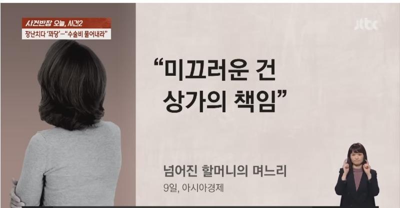 그런데 당신네 가게 앞 관리를 잘 못했기 때문에 미끄러져서 다쳤다???