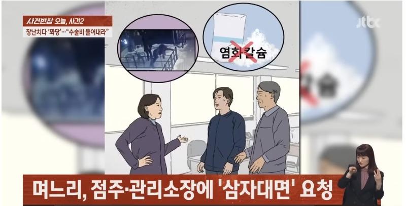 사회자가 곱장칩 사장님 입장을 정리해서 말해주네요.