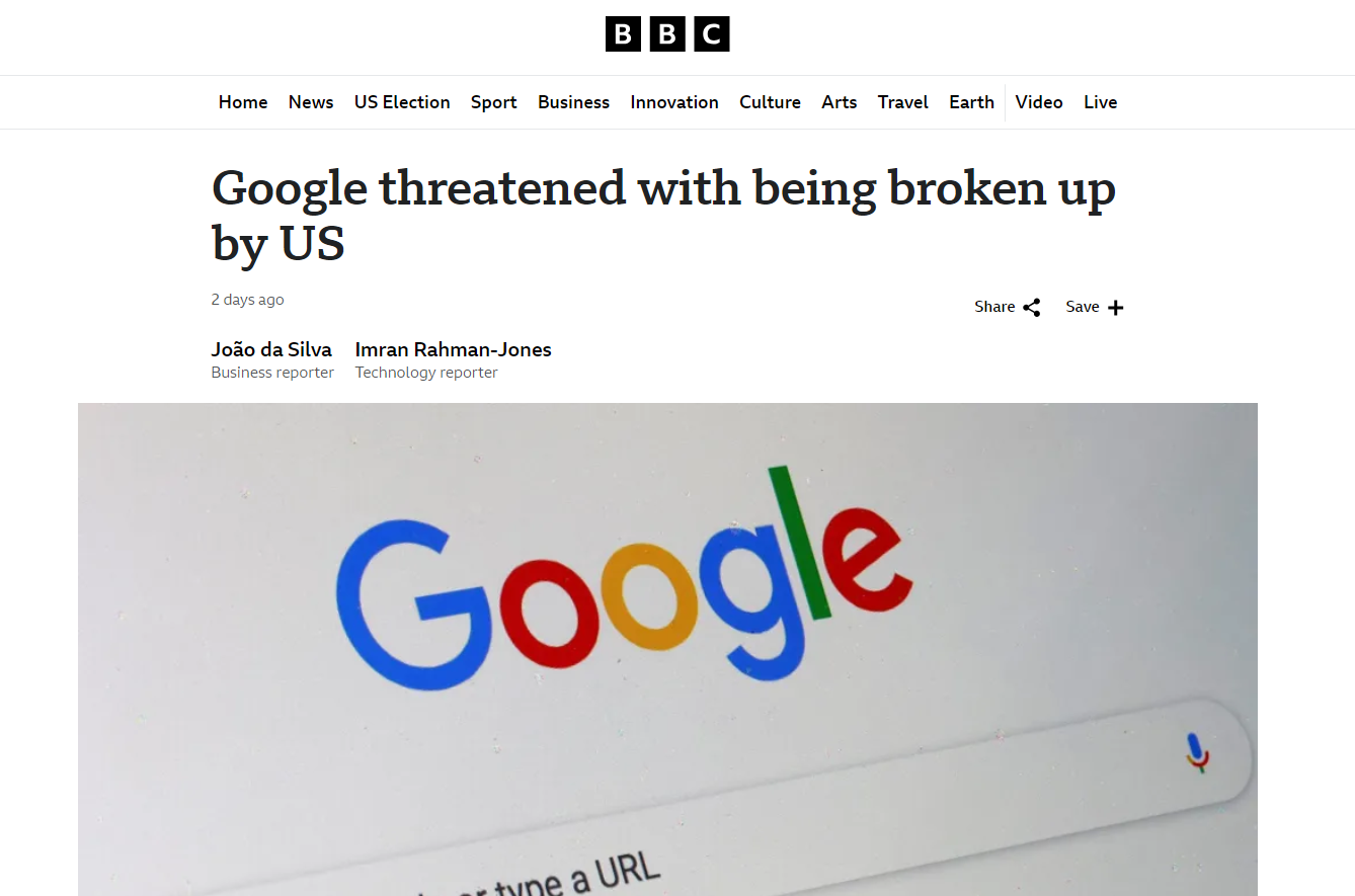 - 한경닷컴: '반독점 패소' 구글 해체될까…美당국 검토 중