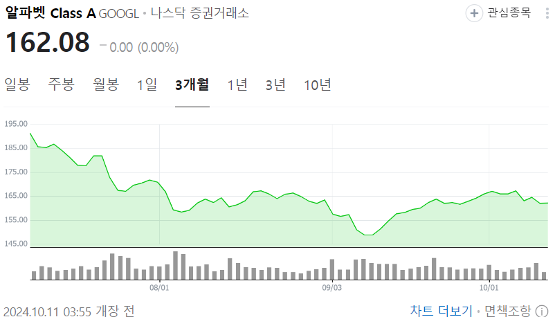 구글의 모회사인 **알파벳($GOOGL)**의 주가는 이번 소송 이후로 변동성을 보이고 있습니다.