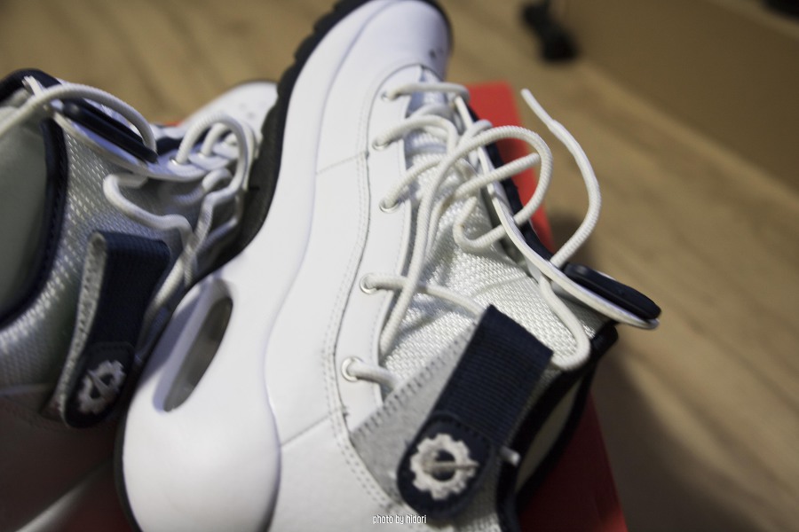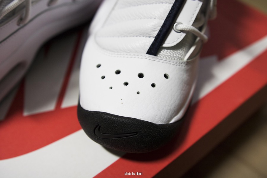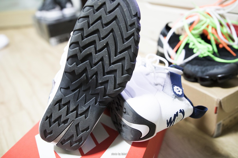 흰빨 제품은 앞코 스우시 부분이 레드칼라로 박혀있는데, 흰남 제품은 각인만 되어 있습니다. 다른 메이커들은 로고가 많이 붙어있으면 보기 싫지만, 나이키의 스우시는 덕지덕지 붙어있어도 예쁩니다.