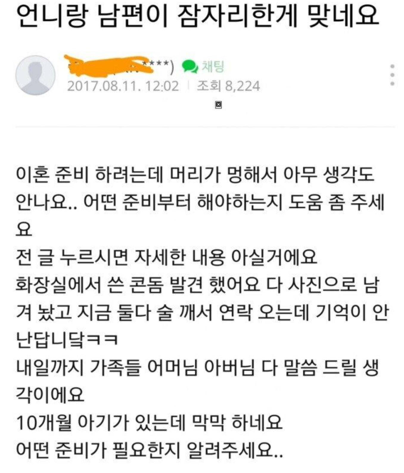 10개월의 아기가 있지만... 결국 이혼을 하기 위해 필요한것이 뭔지 물어보는 글쓴이!