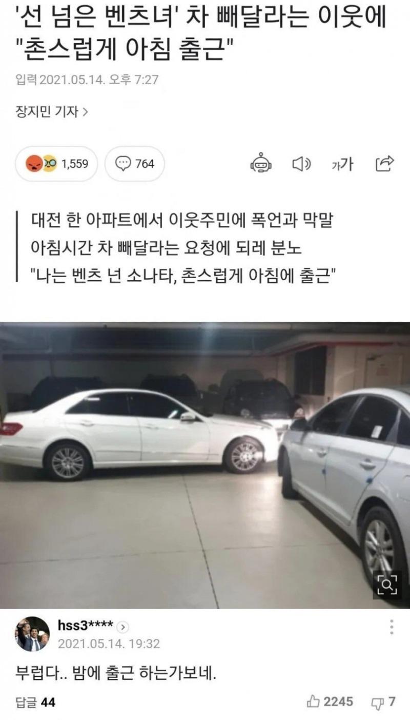 대전의 한 아파트 지하주차장에서 이동주차를 부탁한 자신의 어머니가 일명 '벤츠녀'에게 폭언에 협박까지 당했다는 사연이 온라인 커뮤니티에 올라왔습니다.
