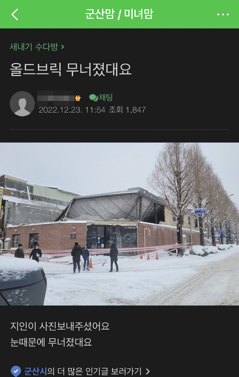 눈때문에 무너졌다는 소식을 들어보셨나요?