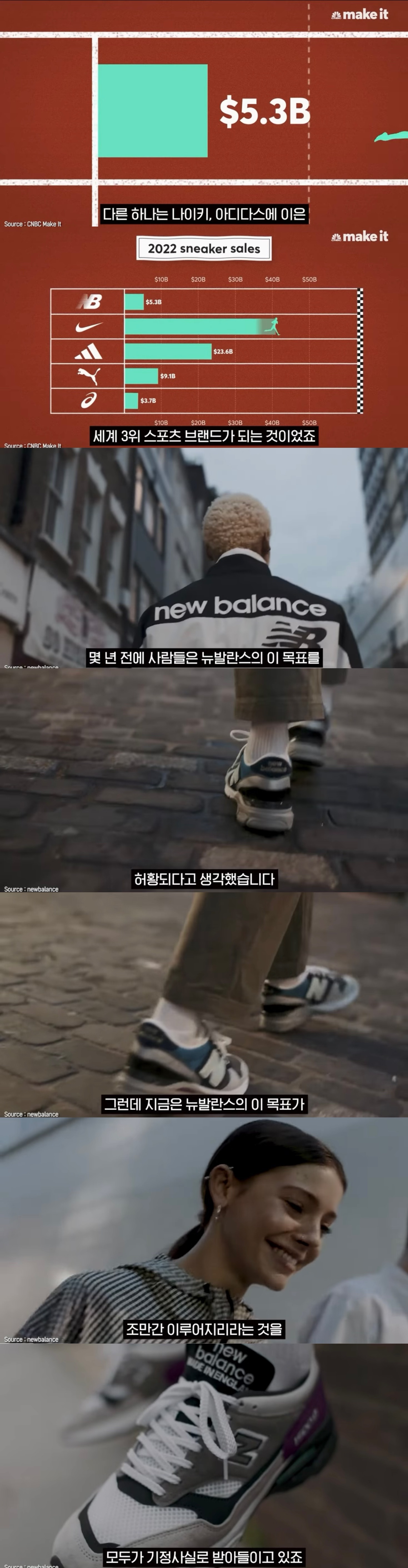 뉴발란스의 목표는 명확합니다. 첫째, 세계 3위 스포츠 브랜드로 자리 잡는 것. 둘째, 나이키와 아디다스를 넘어서기 위한 지속적인 혁신과 성장을 이루는 것입니다. 몇 년 전만 해도 이 목표는 허황된 것으로 보였으나, 현재 뉴발란스는 그 목표에 점점 가까워지고 있습니다.