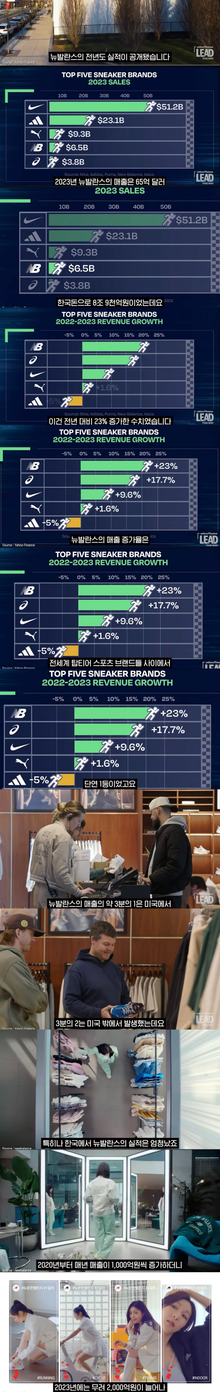 뉴발란스는 지난해 매출 65억 달러(한화 약 8조 9천억 원)를 기록하며 전년 대비 23% 성장했습니다. 특히 한국 시장에서의 실적이 눈에 띄게 좋았습니다. 2020년부터 매년 1,000억 원씩 증가해 현재는 9,000억 원을 돌파했습니다. 이러한 성과 덕분에 뉴발란스는 국내에서 아디다스를 밀어내고 나이키에 이어 2위 브랜드로 자리 잡았습니다.