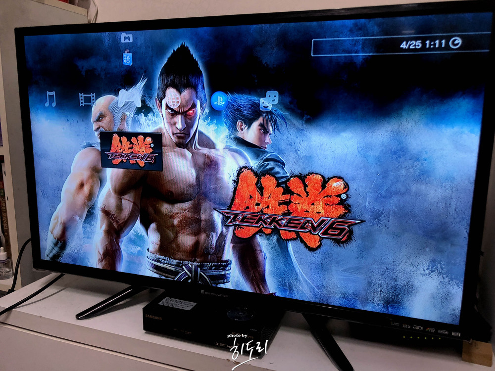 TV 연결은 HDMI 한 가닥으로 깔끔하게. 예전 플스 생각하고 영상/오디오 따로 꽂아야 하나 고민했는데, PS3는 한 번에 해결! 기본 와이파이도 되지만 안정성은 유선 랜이 최고라 케이블로 연결 완료했습니다. 기종은 CECH-2005B(슬림) / 250GB. 오랜만에 철권6로 테스트—기계 컨디션 아주 좋네요 :)