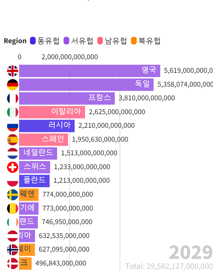 - 2023년 기준으로도 러시아의 경제 규모는 서유럽 주요 국가들에 비해 뒤처지고 있습니다.