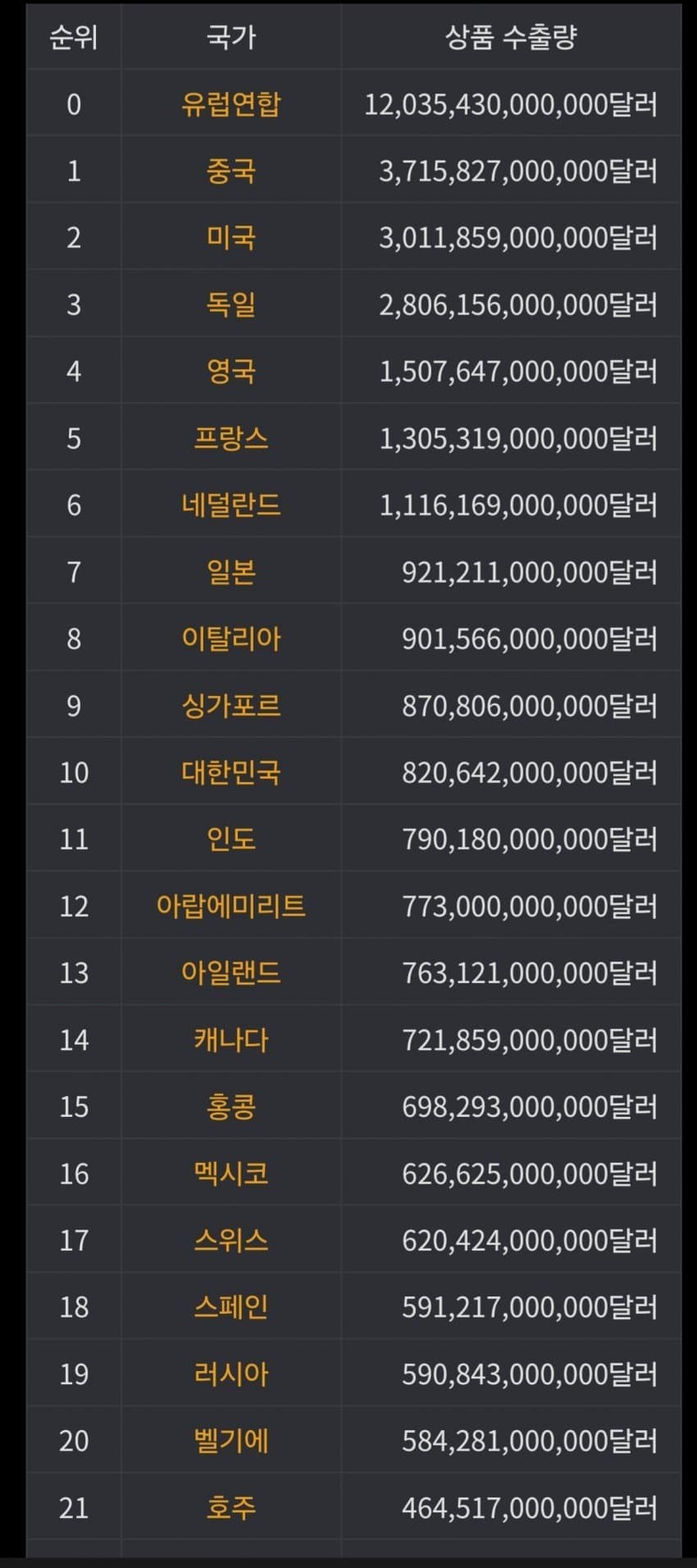- 러시아의 수출 규모는 세계 19위 수준으로, 홍콩, 스위스보다도 적습니다.
