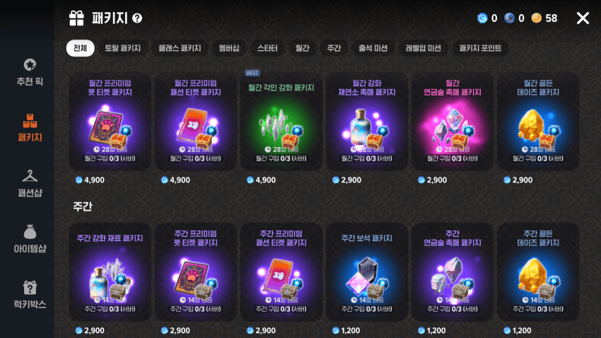 - 등급 있는 옷과 펫은 뽑기로만 획득