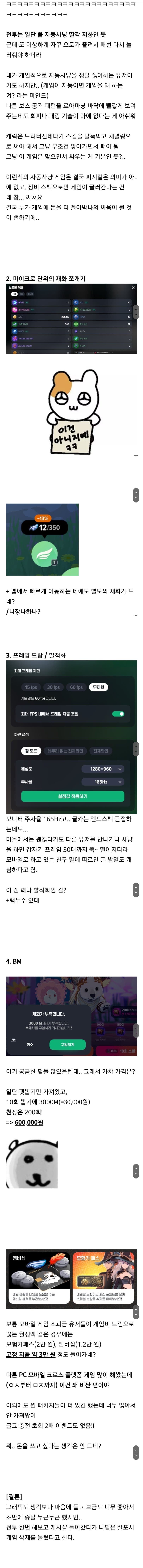 - 유저들과의 유대를 중요시했다면, 지금처럼 양산형 BM 구조로는 절대 만들지 않았을 것
