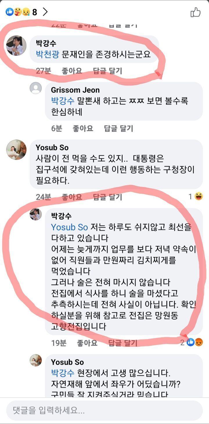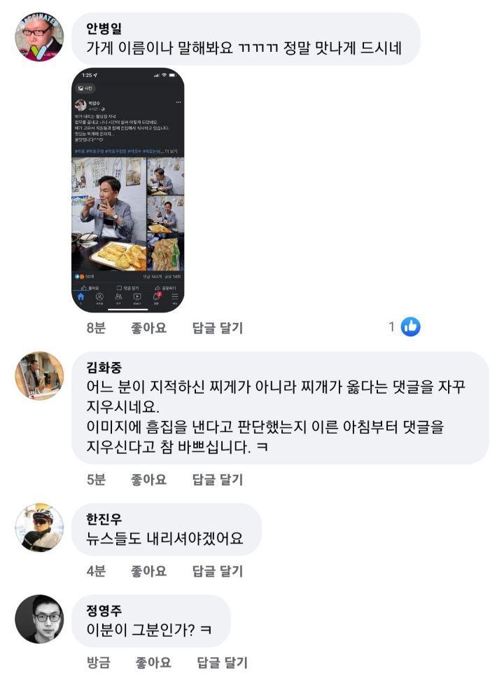 그냥 밥먹는 사진은 서민 코스프레하고 칭찬듣고 싶었는데 반응이 영 별로라서 빡치는 구청장