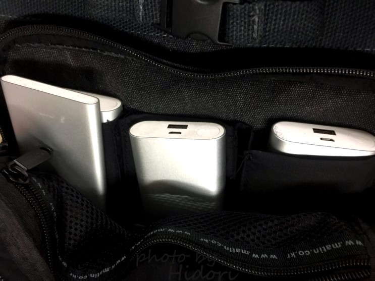 - 전자기기 수납: 앞쪽 주머니식 수납공간은 보조배터리 등 전자기기를 안전하게 보관할 수 있습니다.