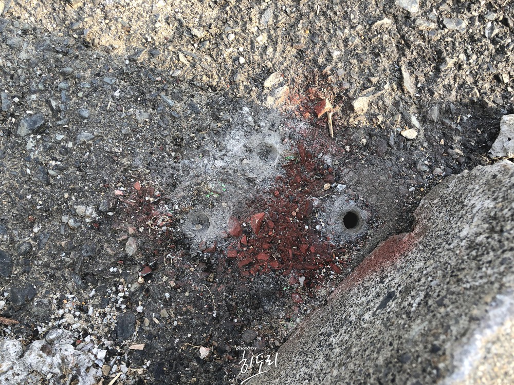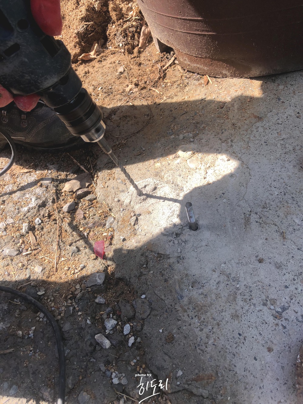 - 천공 작업 → 해머드릴로 약 50mm 깊이 뚫기