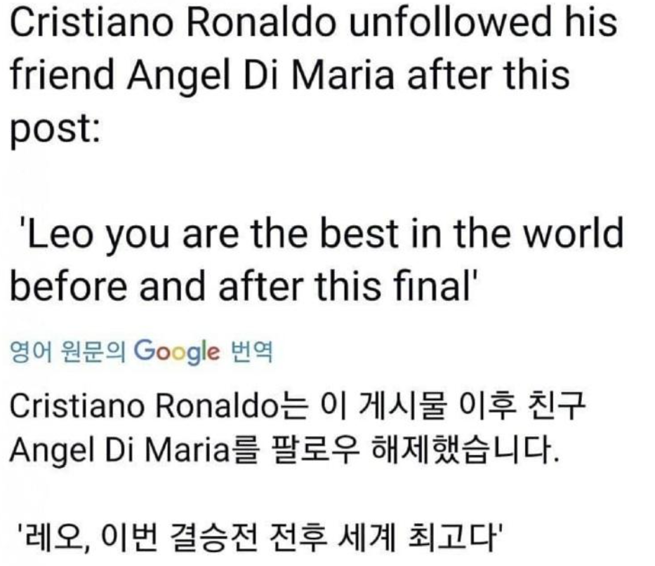 호날두가 디마리아 언팔... ㅋㅋㅋㅋㅋㅋㅋㅋㅋㅋ