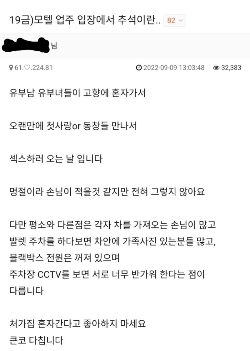 모텔 업주 입장에서 추석이란?
