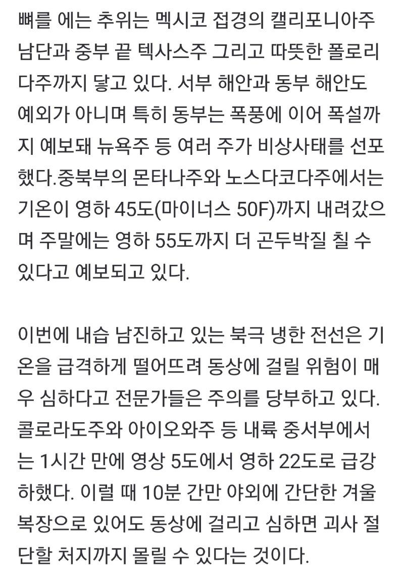 10분만 야외에 간단한 복장으로 있어도 동상이라니...