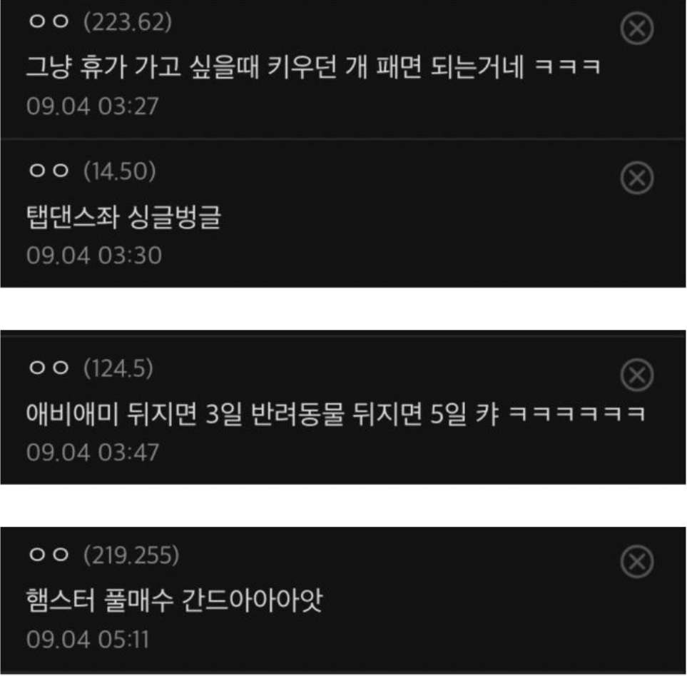 부모님 돌아가시면 3일 반려동물 죽으면 5일 캬~