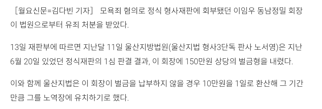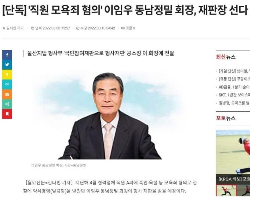 협력업체 직원에게 욕설, 폭언을 한 혐의로 재판을 받게 된 회장님..