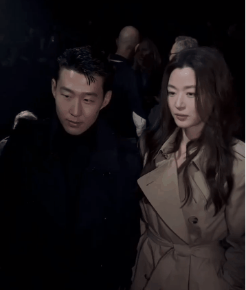 버버리 패션쇼에서 손흥민과 전지현 투샷 .gif