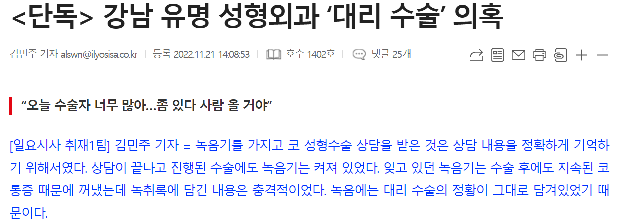 대리수술 근절을 위해 누군가는 정말 ‘분골쇄신’하는 마음으로 직접 나서야합니다. 그렇지 않으면, 이런 특이하고 엄청난 노력이 아니면, 가해자가 조금의 양심의 가책도 느끼지 않는 이 ‘악의 관행’은 절대로 뿌리 뽑히지 않을 것이기 때문입니다.