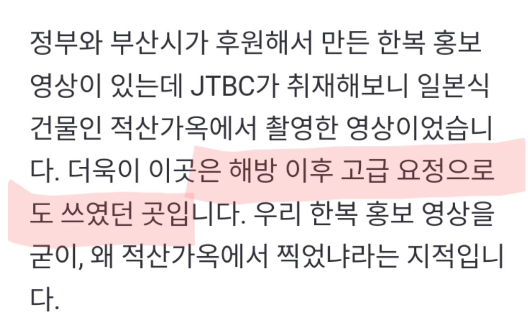 그런데 해당 영상은 부산섬유패션산업연합회가 만들었는데 일본식 건물에서 촬영되었다고 합니다.