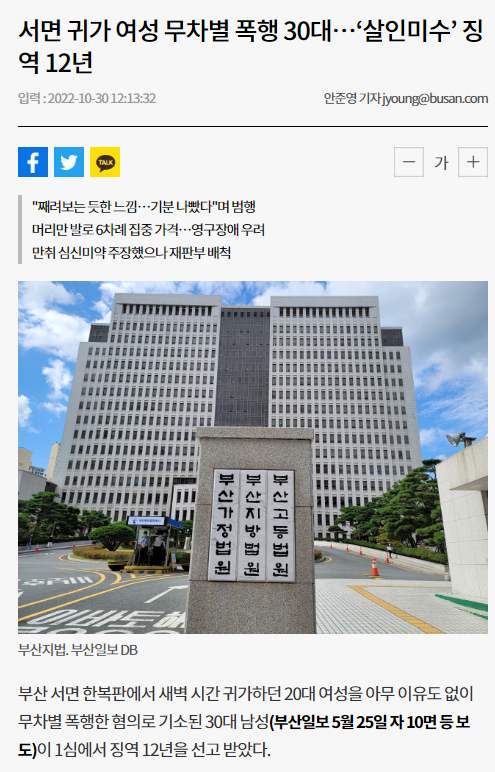 부산에서 처음본 여성을 뒤 쫏아가서 뒤돌려차기로 머리를 가격 실신한 여성을 반복해 머리를 짓밟고 속옷까지 벗긴 미친x 어떤 사연인지 한번 보자! 그 덩치로 여자를 기억이 없어질때까지 때