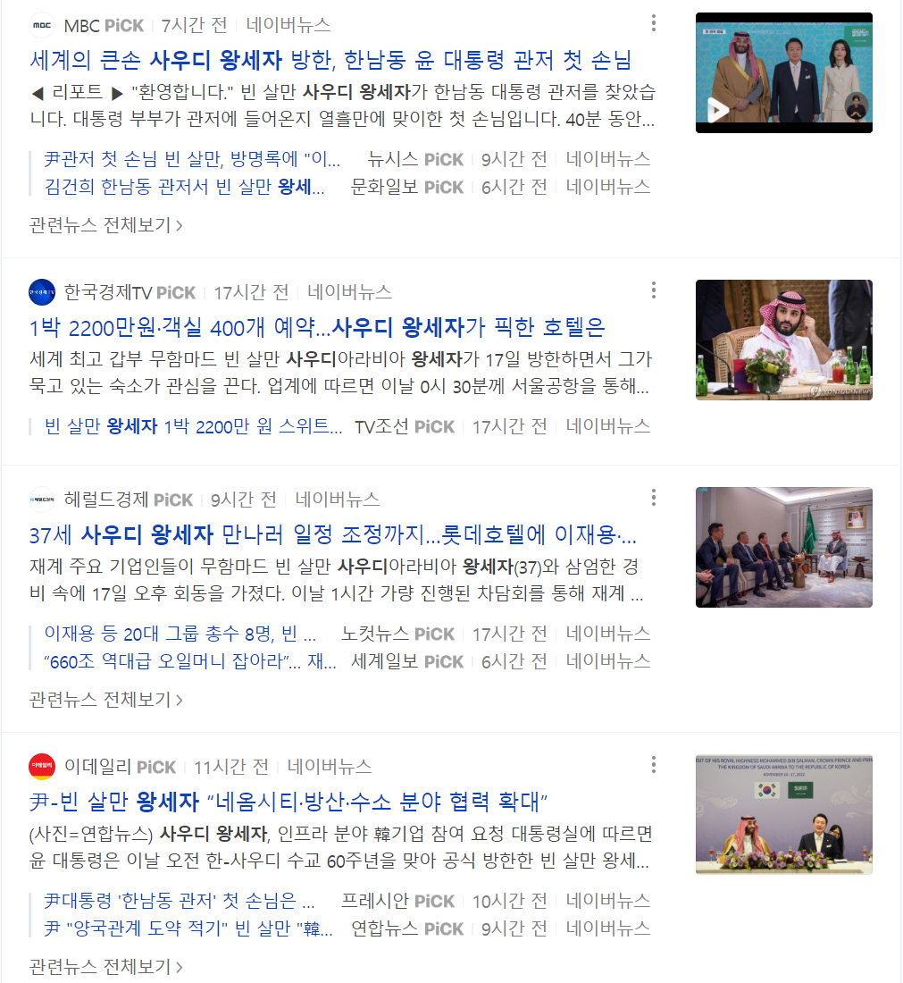 사우디 왕세자가 한국을 방문해서 각종 뉴스에 기사들이 쏟아져 나오고 있습니다.