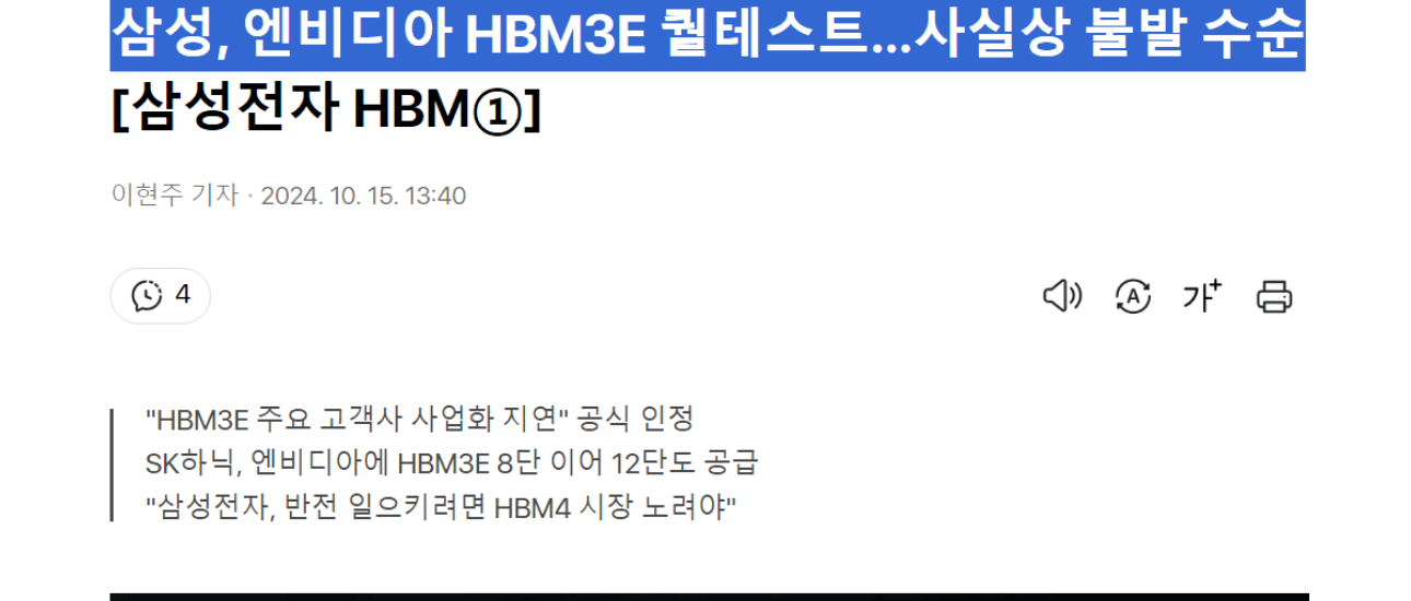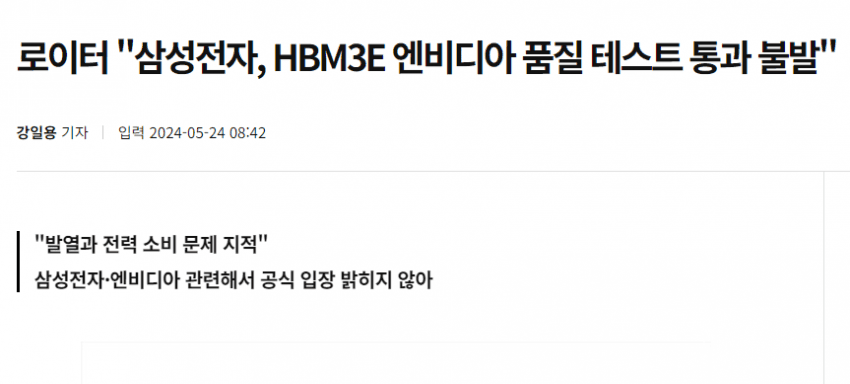 삼성전자는 올해 여름에 엔비디아의 테스트를 통과할 것으로 예상되었지만, 아직까지도 테스트를 통과하지 못해 공급에 어려움을 겪고 있습니다.