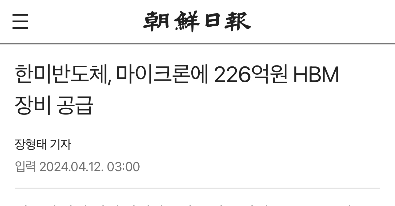 - SK하이닉스와 마이크론은 한미반도체의 TC 본더(Thermocompression Bonder) 장비를 사용하고 있습니다.