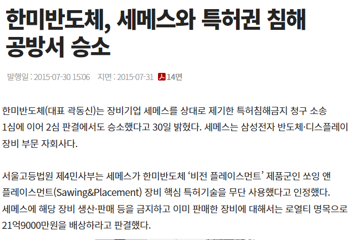 - 삼성전자는 한미반도체의 특허를 무단으로 사용하려다 문제가 발생한 것으로 알려져 있습니다.