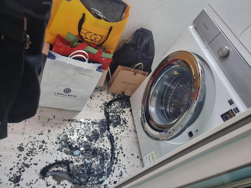베란다에서 방까지 튀었다는 삼성 세탁기의 유리조각