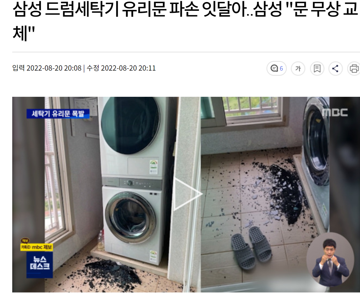 삼성 드럼세탁기에 붙어있는 유리문이 파손되는 사고가 현재 계속 일어나고 있습니다.