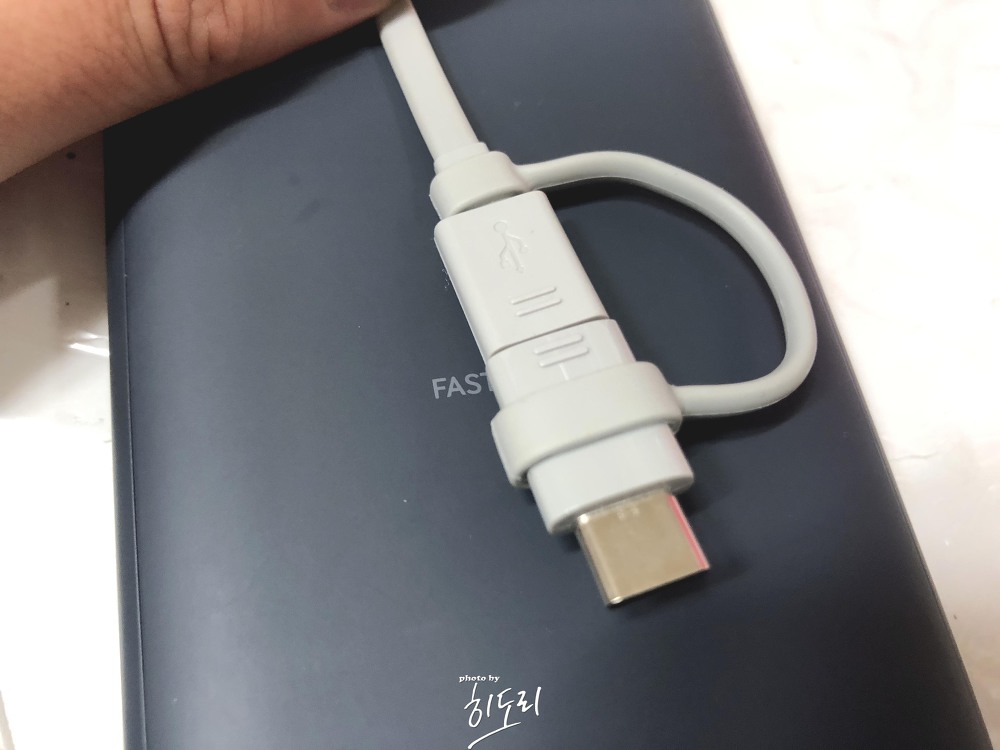 기본적으로 C타입 잭이 동봉되어 있습니다. 뒷쪽을 벗겨내면 일반 마이크로 5핀도 사용할 수 있습니다. 또한, USB 타입이라 아이폰 8핀으로도 교체가 가능합니다.
