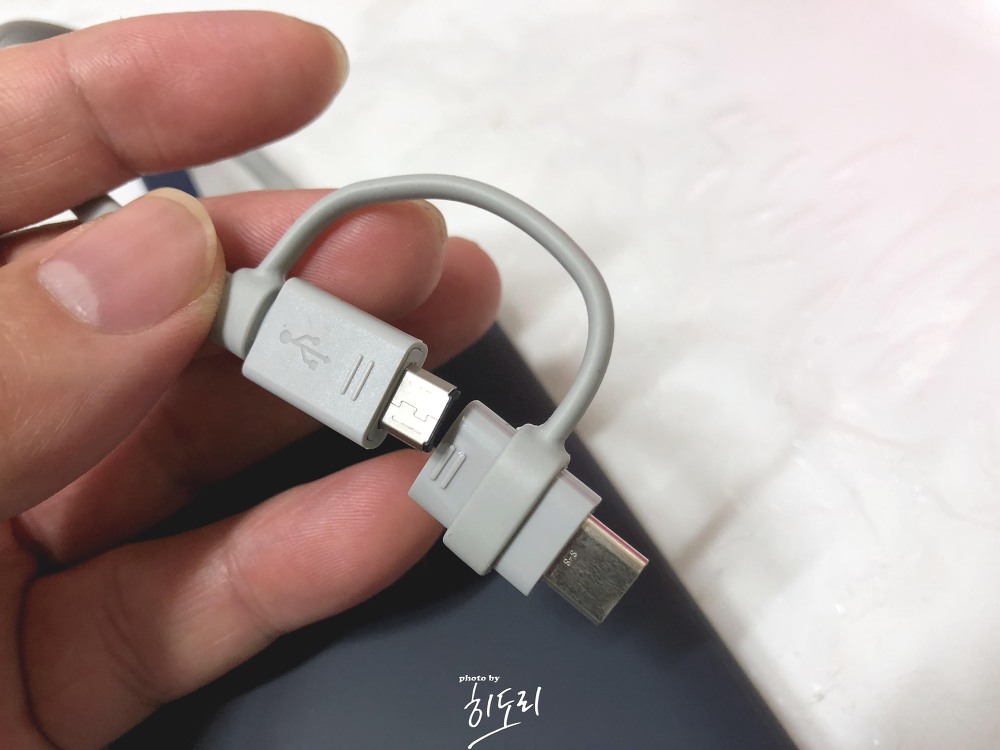 기본적으로 C타입 잭이 동봉되어 있습니다. 뒷쪽을 벗겨내면 일반 마이크로 5핀도 사용할 수 있습니다. 또한, USB 타입이라 아이폰 8핀으로도 교체가 가능합니다.