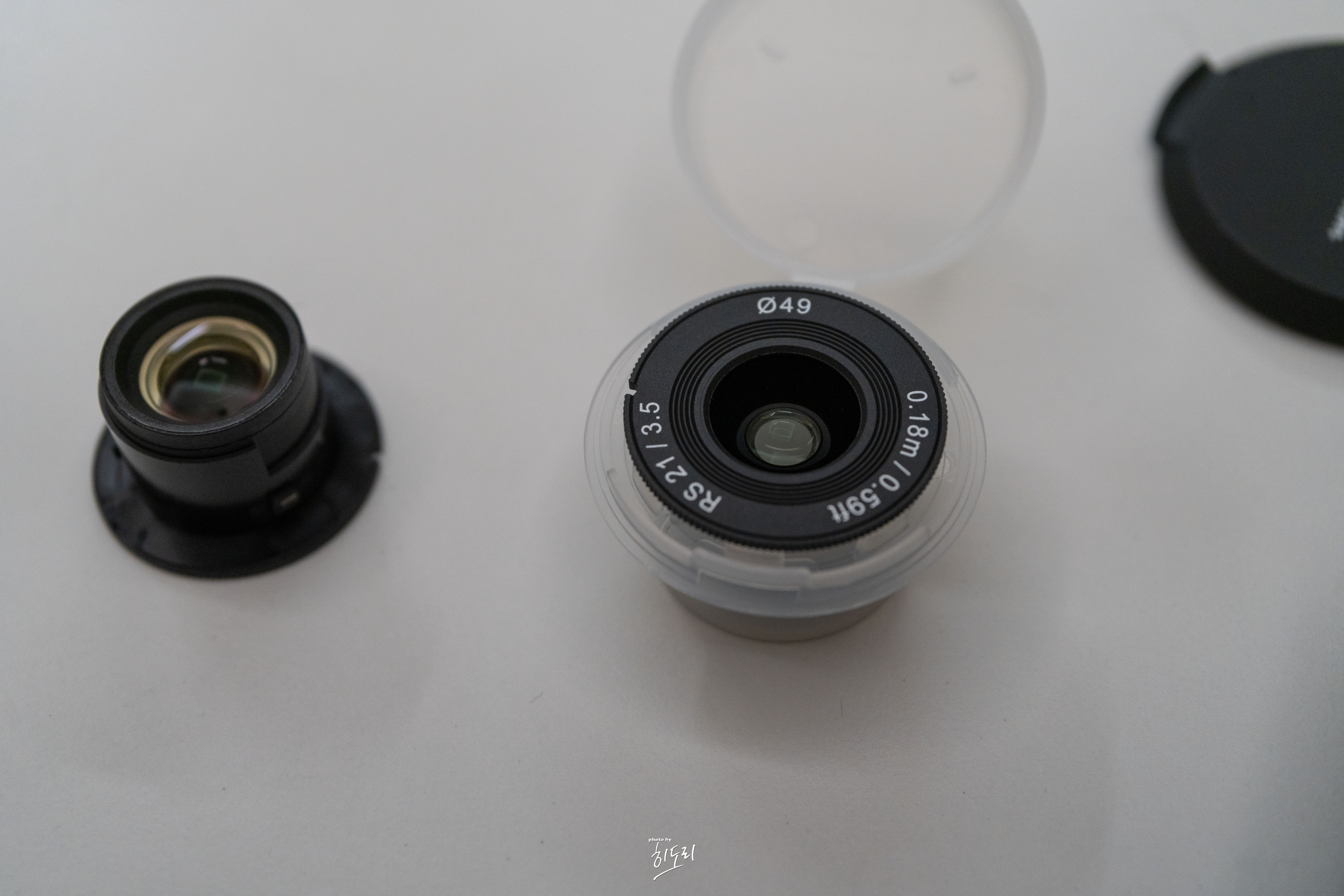 렌즈를 받아보고 가장 먼저 놀란 것은 그 작고 깜찍한 크기였어요. 작은 박스를 열어보니 손바닥만 한 하드 케이스가 나오더라고요. 케이스를 열어보니 앙증맞은 렌즈들이 자리하고 있었어요. 정말 렌즈캡 몇 개를 쌓아놓은 듯한 두께에 감탄하지 않을 수 없었답니다.