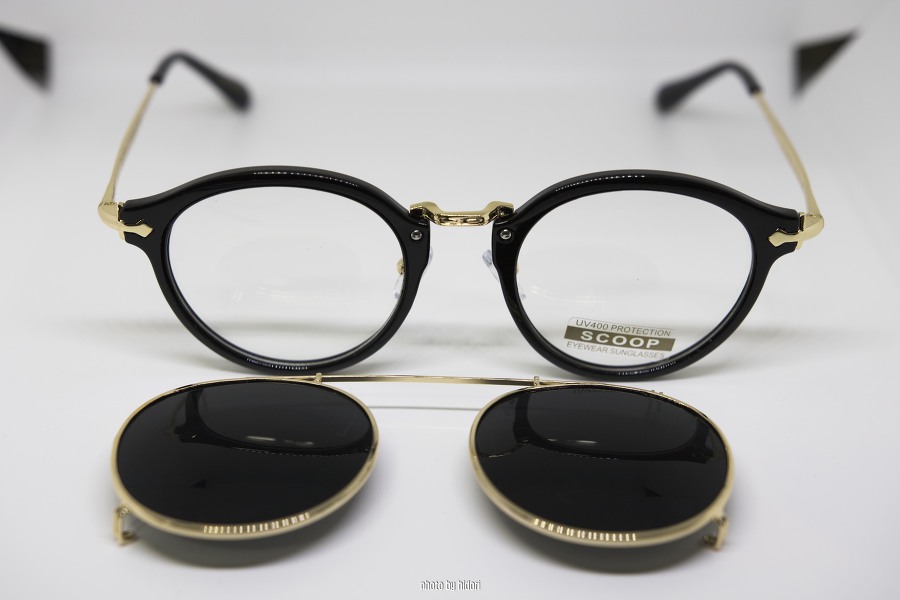 이 제품의 케이스는 빈티지한 느낌으로, 가죽 재질이라 매우 멋집니다. 일반 안경으로도 사용할 수 있고, 클립온으로 렌즈를 추가로 끼워서 선글라스로도 사용할 수 있습니다.
