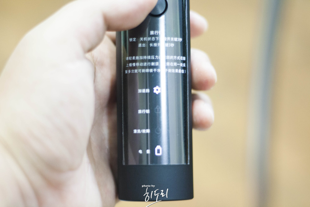 - 모드/표시등: 가속모드(수염 진한 날용), 세척 알림, 여행 잠금