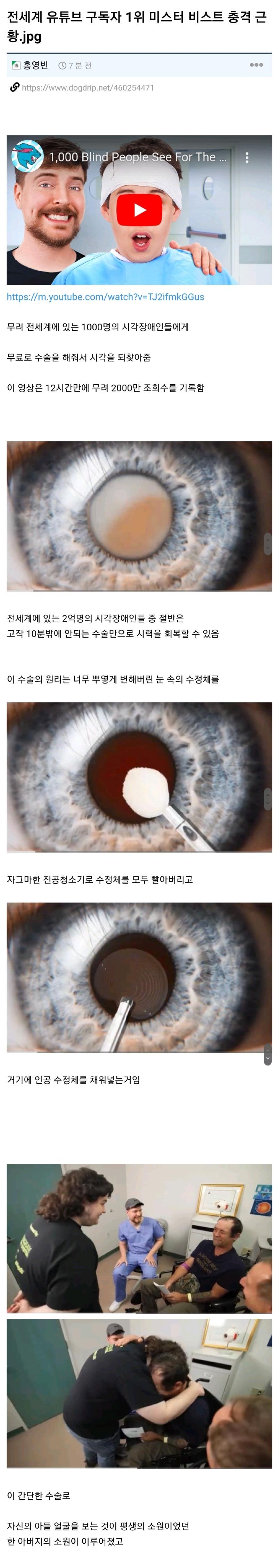 세계 1위 유튜버 미스터 비스트! 시각장애인의 시력을 찾아주다