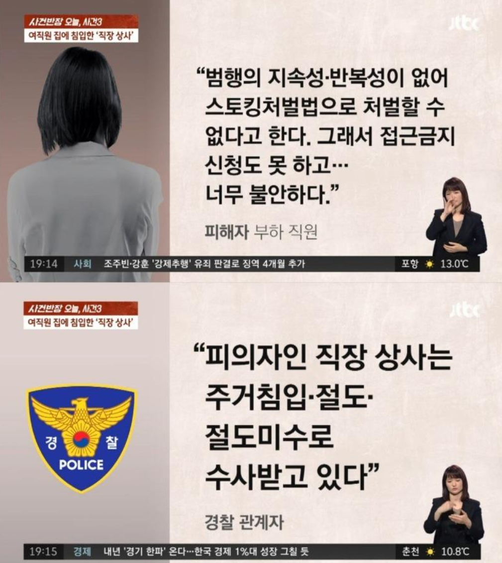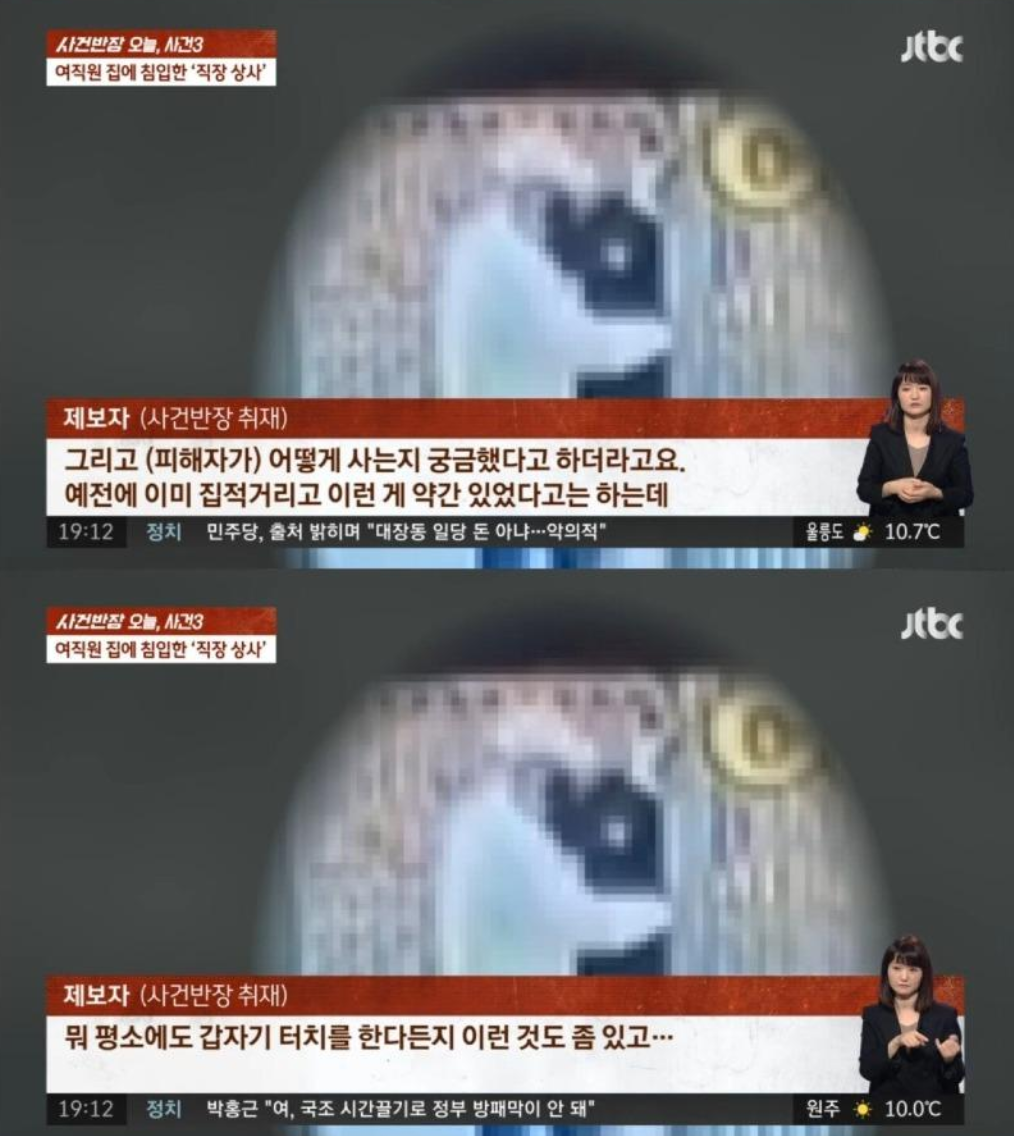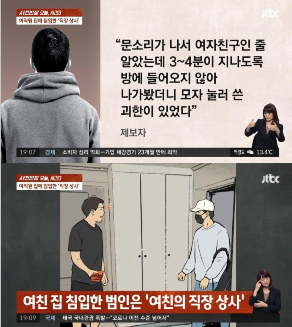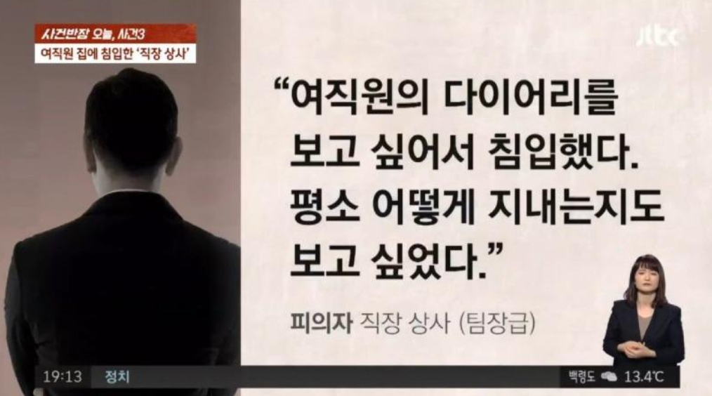 여직원의 집에 몰래 침입한 직장상사의 이야기 인데 jtbc 사건반장에서 나온 뉴스 입니다.