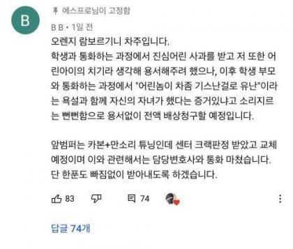 학생 부모들이 "어닌놈이 차좀 기스난걸로 유난"이라고 욕설과 함께 막말을 시전...