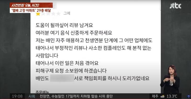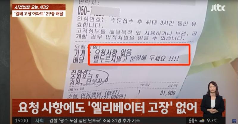 5. 배달 요청사항에도 엘레베이터 고장에 관한 내용은 없었다고 합니다.